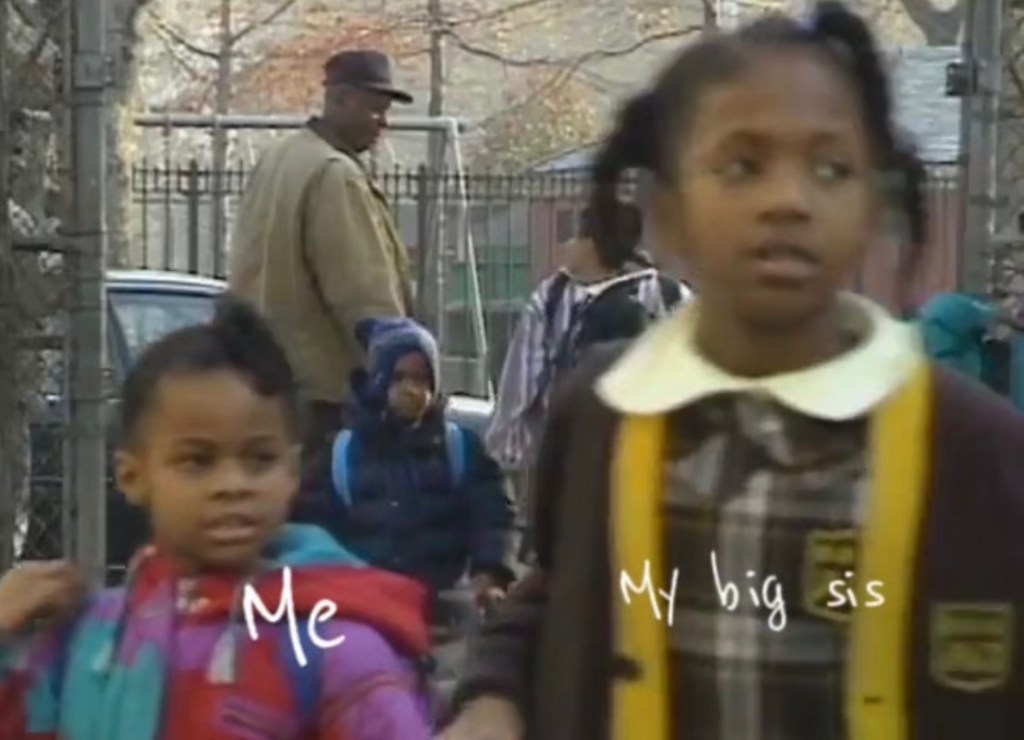 The replays of our childhood are reminiscent of the footage in this video. We appear at the 40 sec mark. The setting is Brooklyn in the early 1990s. We are entering our school, Bethlehem Baptist Academy, a private school run by a Black couple, rooted in Black pride, heritage, and education. I’m probably in kindergarten, and my sister is four years older than I am. We went to African dance classes. We pledged allegiance to the flag, but we also sang “Lift Every Voice and Sing.”